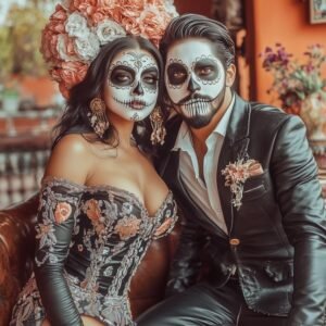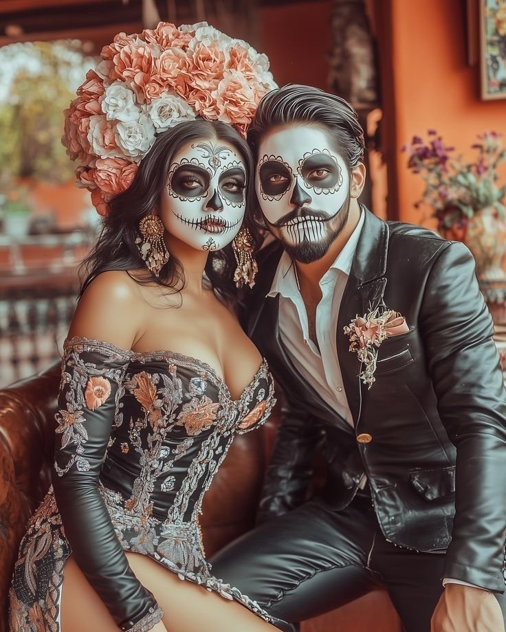 From couture Día de los Muertos looks to artistic Halloween ensembles, dress to impress and celebrate in elegance.